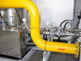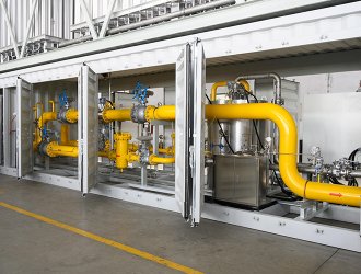 調(diào)壓計(jì)量撬是經(jīng)過(guò)主氣化器氣化后的氣體,由于等壓氣化壓力基本保持和儲(chǔ)罐壓力相近,一般用戶需求壓力是一個(gè)恒定的范圍內(nèi)的值,需要進(jìn)行調(diào)壓穩(wěn)壓。同時(shí)為了計(jì)量核算費(fèi)用或廠內(nèi)核算成本,對(duì)氣化后的LNG流量進(jìn)行計(jì)量,為了實(shí)現(xiàn)以上的功能組合在一起的裝置叫調(diào)壓計(jì)量撬。由矩形撬塊、調(diào)節(jié)匯管、控制閥、計(jì)量管、流量計(jì)、調(diào)節(jié)閥、調(diào)節(jié)管、過(guò)濾器、出氣管、進(jìn)氣匯管、進(jìn)氣口、出氣匯管、排污管和安全放氣閥組成。有的裝置內(nèi)需要加入加臭系統(tǒng)。